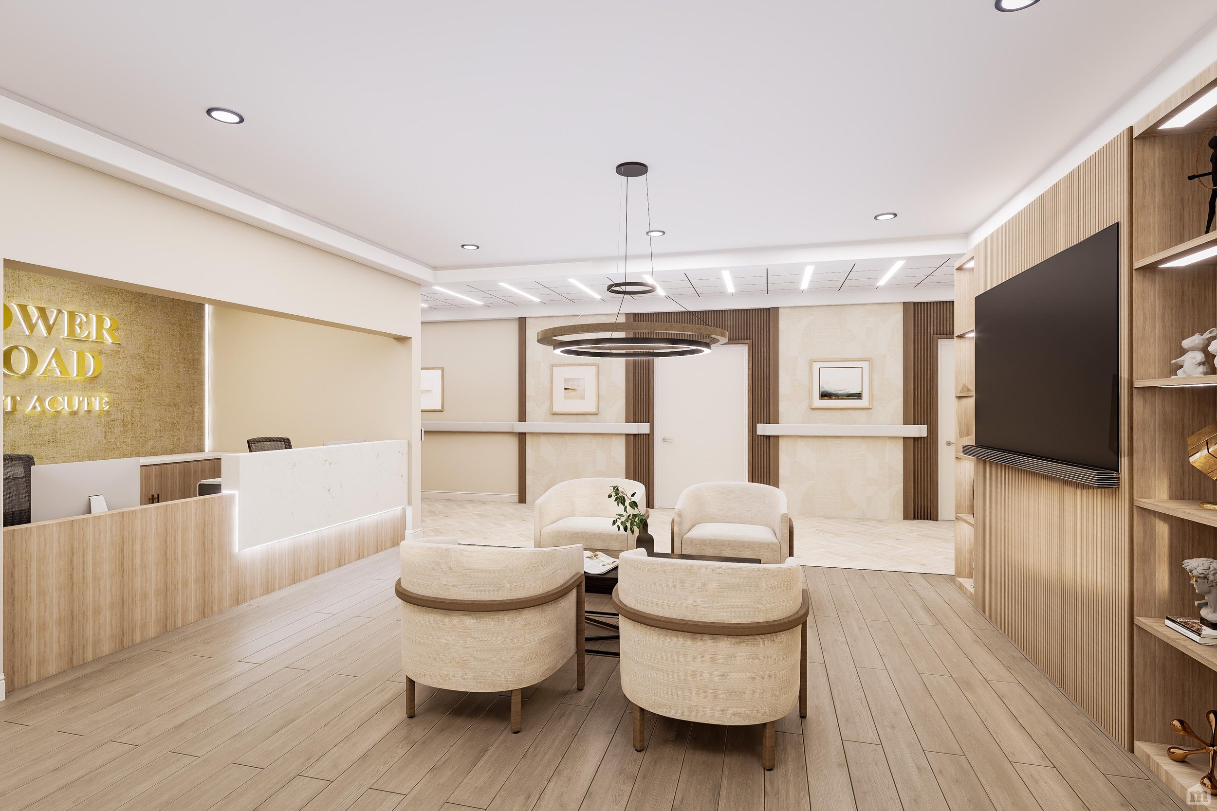 Designed to bring comfort and care into harmony, the interiors of this Atlanta facility create a welcoming environment that feels contemporary yet restorative. Warm wood tones, soft lighting, and subtle texture shifts lend a sense of ease and familiarity throughout.
