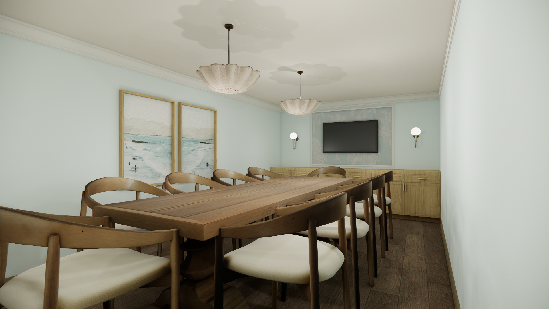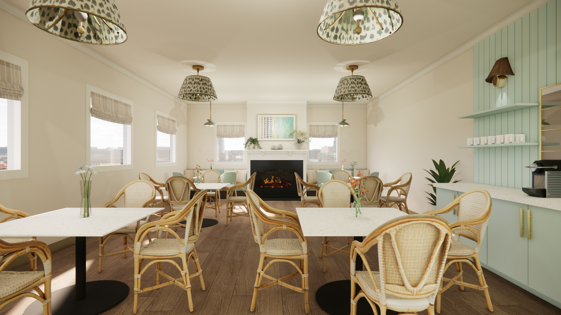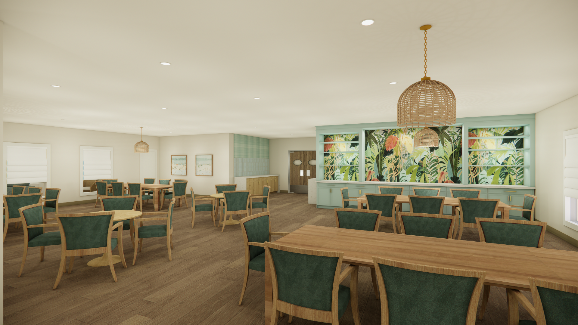 Soft coastal hues, natural textures, and layered light create an atmosphere that feels both serene and social. From the inviting living area to the bright gathering rooms, each space was designed to foster connection, conversation, and a vibrant sense of community.